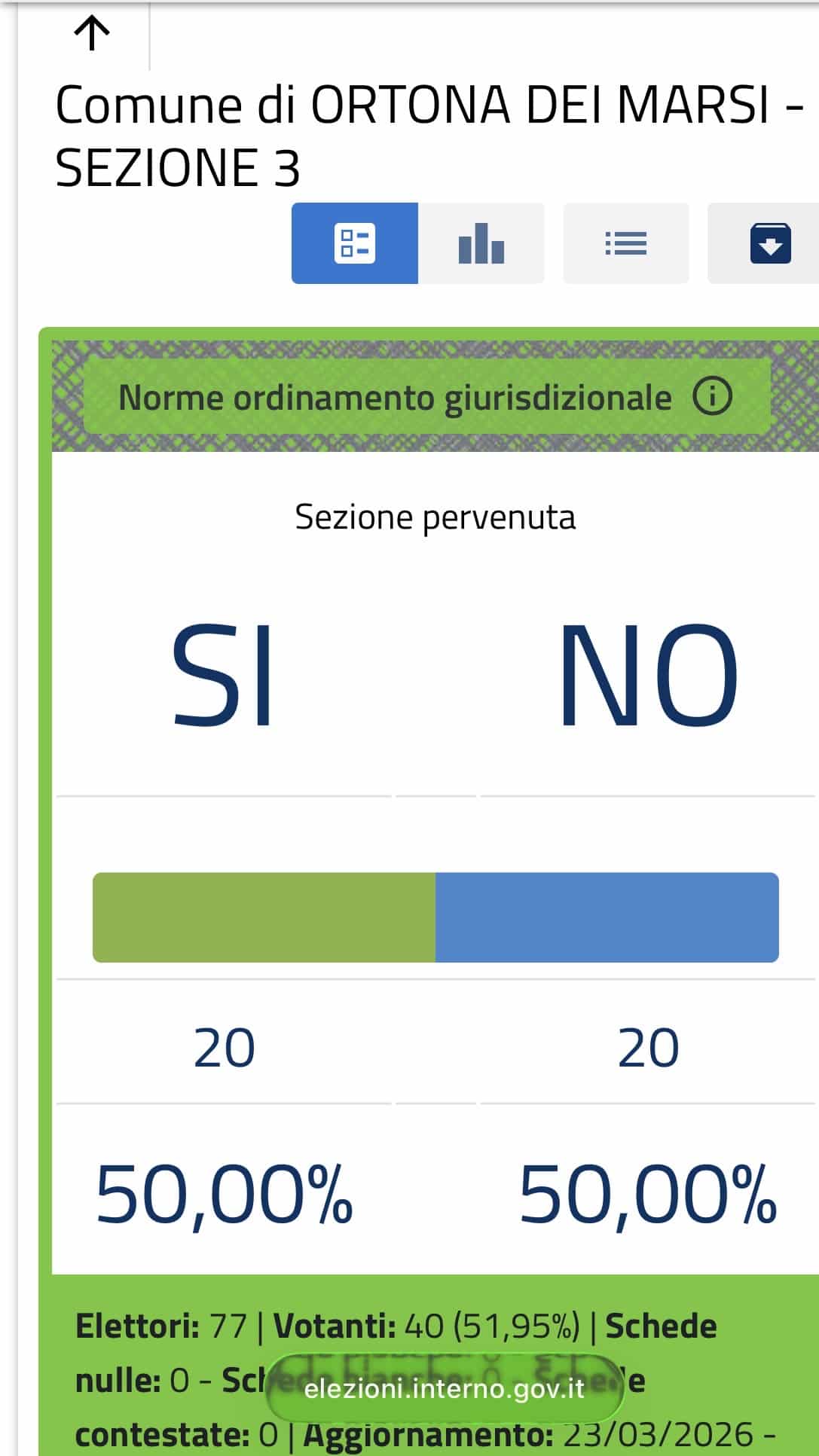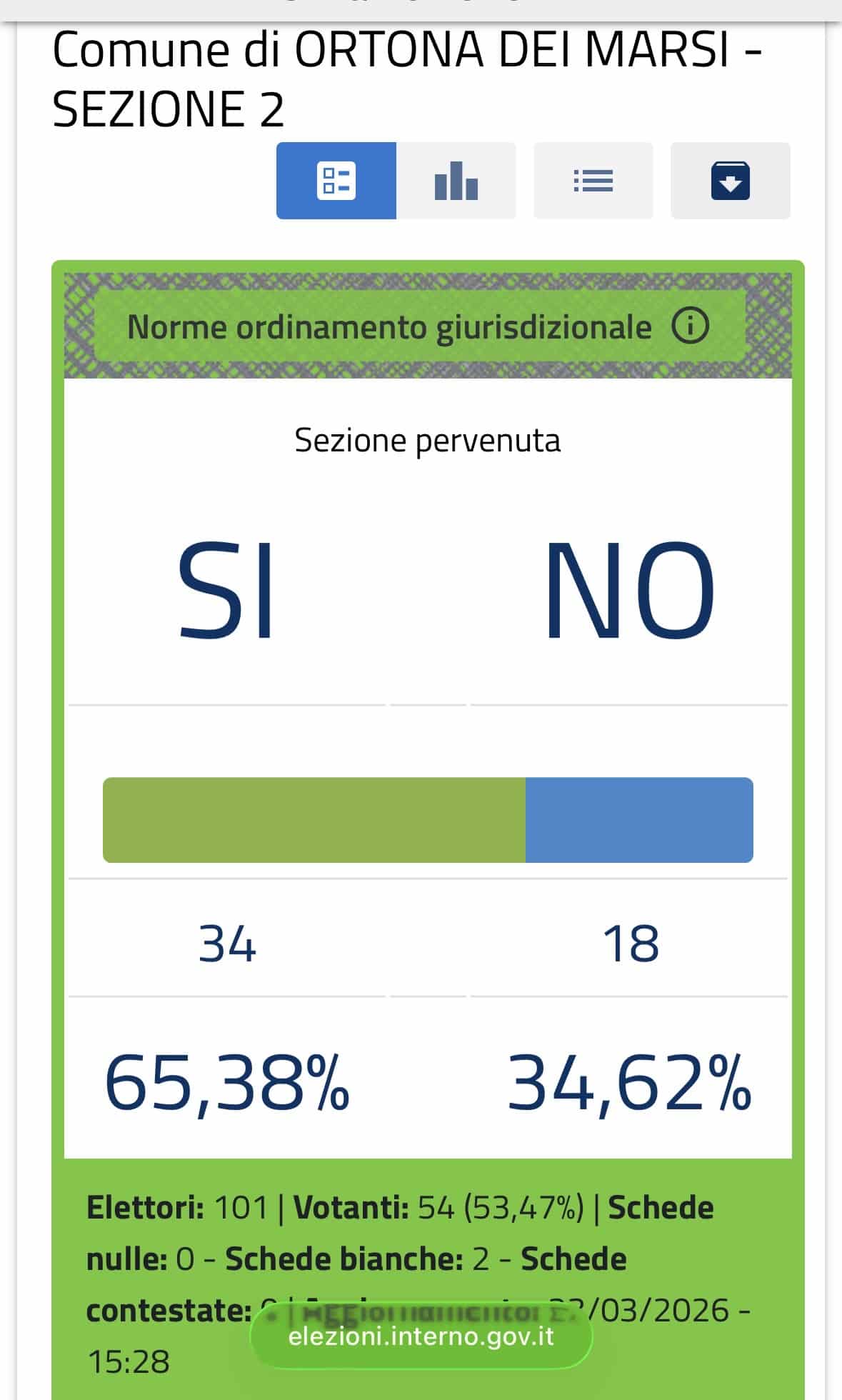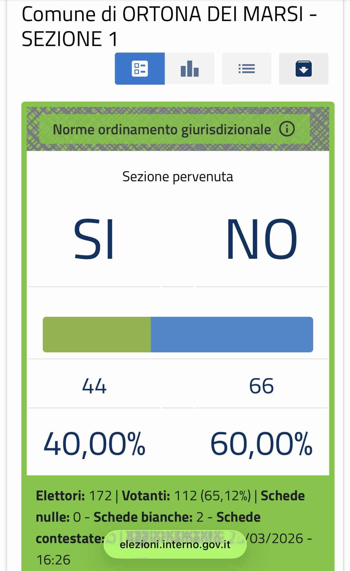 risultati referendum del 22 e 23 marzo 2026-comune di ortona dei marsi